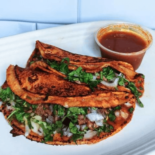 A flour cheese quesadilla filled with our marinated birria. Served with salsa