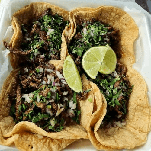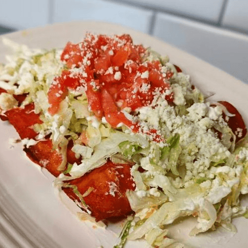 4 marinated corn tortillas filled with chicken or potatoes. Topped with lettuce, sour cream, tomato, salsa, and crumbled queso fresco